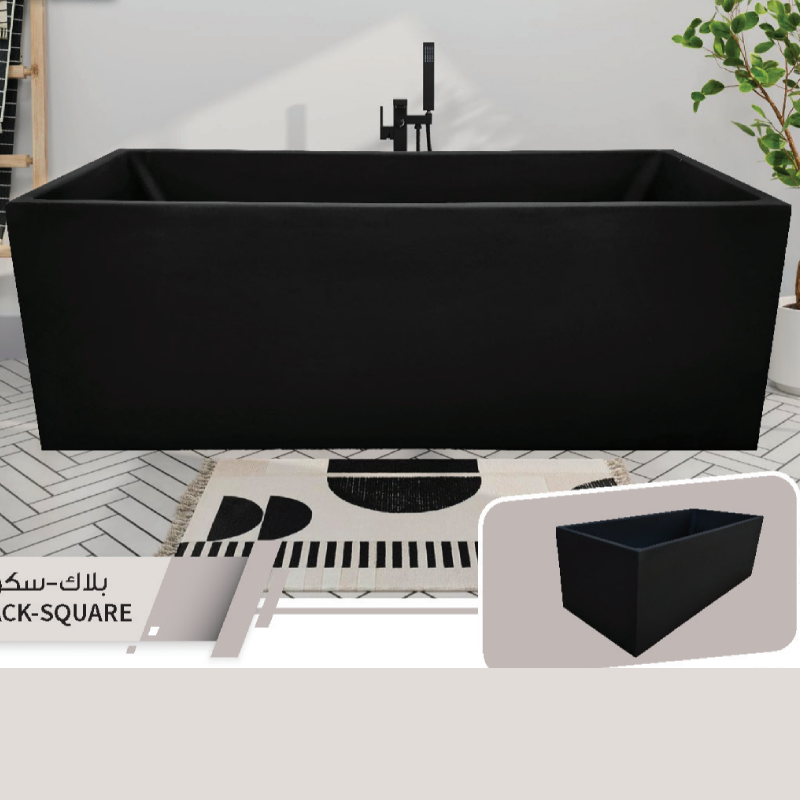 Discover a new standard of modern luxury with the Black Square Acrylic Freestanding Bathtub Black (170×75) Glossy | Tr-ab, available at Tareeq Al Raha BLDG. MAT. TR. LLC. This beautifully designed bathtub combines aesthetics and functionality, perfect for contemporary bathrooms that demand both style and comfort.The rich, glossy black finish and geometric square shape make this tub a bold centerpiece, while its spacious 170 ?75 cm dimensions provide ample room for a full, relaxing soak. Made from high-quality acrylic, it ensures long-lasting durability, a warm-to-touch surface, and easy cleaning ?perfect for everyday use.Whether you’re remodeling your home or designing a new space, this freestanding bathtub is ideal for luxurious bathrooms, hotel suites, or modern apartments seeking a designer edge.Transform your bathroom into a sanctuary of comfort and style with the Black Square Acrylic Freestanding Bathtub Black (170×75) Glossy. Experience modern elegance backed by lasting performance ?only from Tareeq Al Raha BLDG. MAT. TR. LLC.