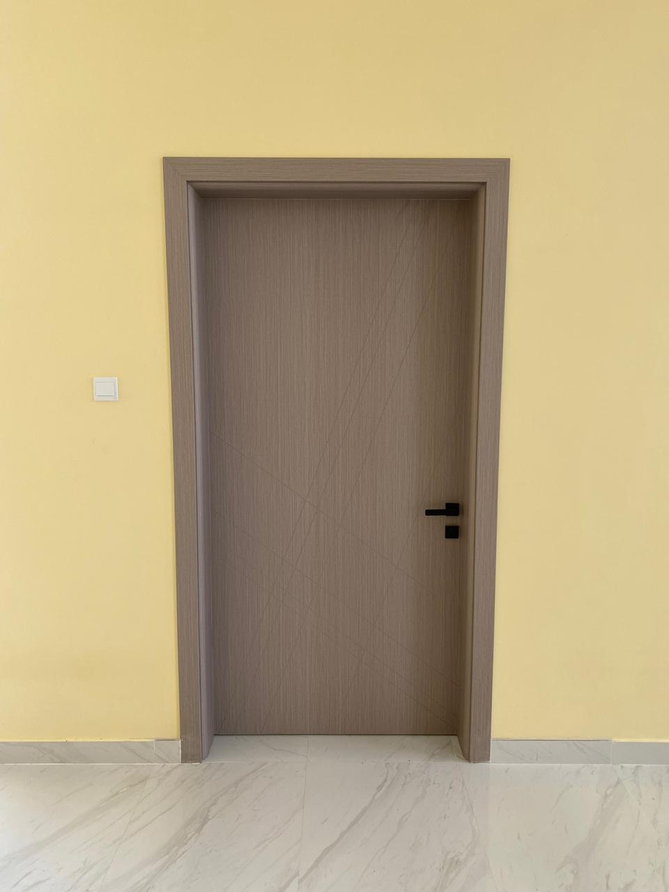 The WPVC Door in Brown, available in multiple sizes (220X80), is a premium offering from TAREEQ AL RAHA BLDG. MAT. TR. LLC, located in Al Sajaa Industrial, Sharjah. This door is designed with a blend of aesthetics and functionality, making it an ideal choice for both residential and commercial spaces.Crafted from Wood Plastic Composite (WPVC), this door offers superior durability and resistance to environmental factors such as moisture and termites. Its brown color and elegant design complement a wide range of interior styles, from modern to traditional. The texture of the door mimics the natural grain of wood, providing the warmth and appeal of wood without the associated maintenance issues.One of the standout features of our WPVC Door is its low maintenance requirements. Unlike traditional wooden doors that need regular upkeep, WPVC doors can be easily cleaned with a damp cloth, saving you time and effort. The material is also eco-friendly, made from recycled wood and plastic, contributing to a sustainable future.Our WPVC Door is versatile and can be used in various settings, including homes, offices, and commercial establishments. It is available in multiple sizes to suit different architectural needs, and its lightweight nature allows for easy installation. The door can also be customized to meet specific design requirements, making it a flexible solution for any project.At TAREEQ AL RAHA BLDG. MAT. TR. LLC, we are dedicated to providing high-quality building materials that meet the diverse needs of our customers. Our WPVC Door is a reflection of our commitment to quality, style, and functionality.
