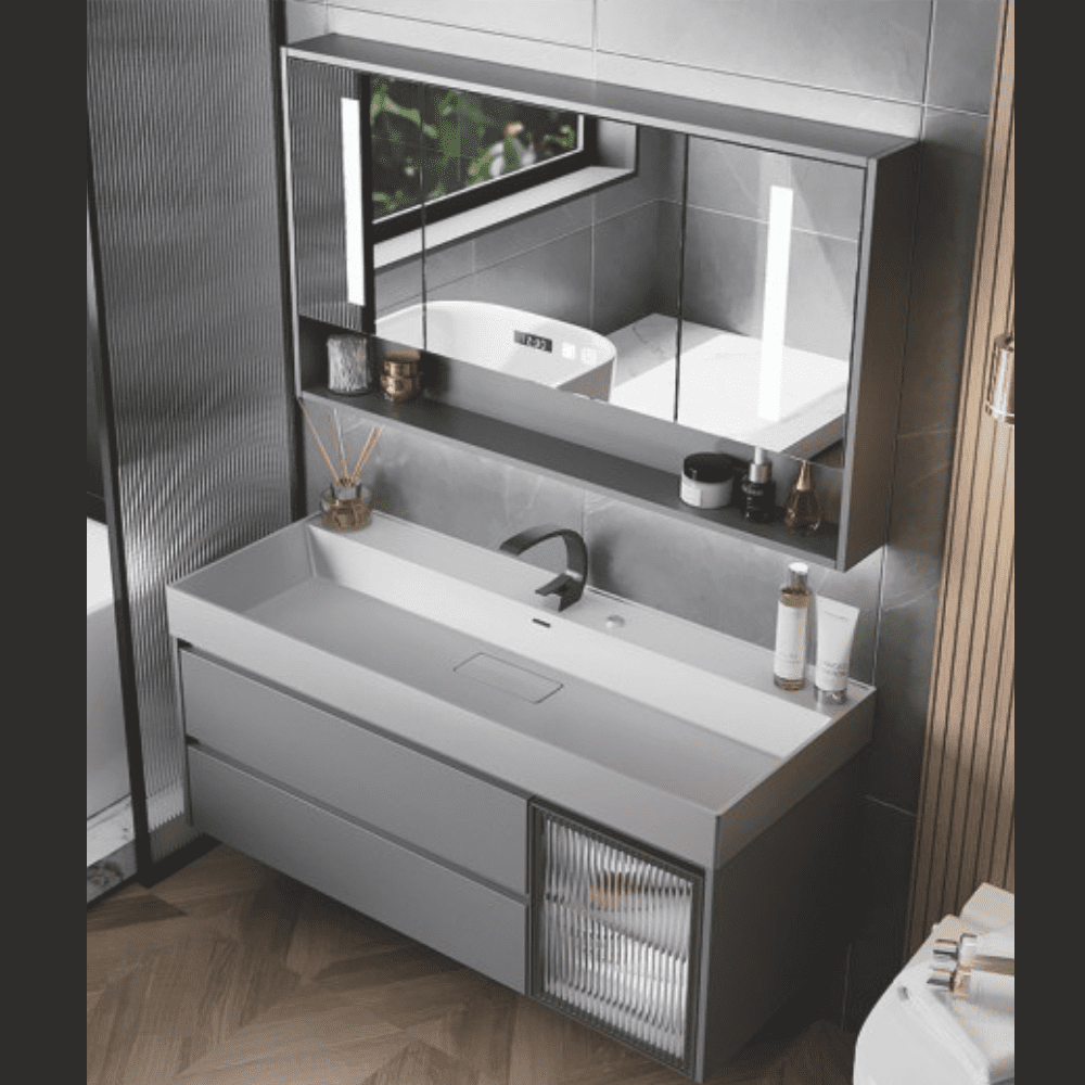 M2099-TRB Cabinet with Mirror & Storage (80×50 cm) offers practical storage with a classic mirror design, perfect for keeping bathroom essentials organized while enhancing space aesthetics. Available at Tareeq Al Raha, Sharjah.
