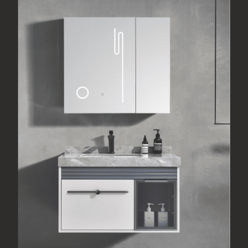 The Wall Mounted Cabinet With LED Mirror & Storage (80×50 cm) | M6341-TRB is a perfect solution for compact, modern bathrooms. Featuring a frameless LED mirror and internal storage, it provides optimal functionality without compromising on style. Its space-efficient wall-mounted design ensures easy installation and long-term use. Ideal for both residential and commercial settings. Now available at Tareeq Al Raha BLDG. MAT. TR. LLC, Sharjah.